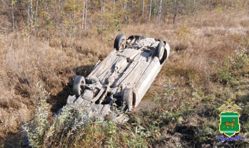 В ЕАО водитель опрокинул машину на трассе и покинул место ДТП