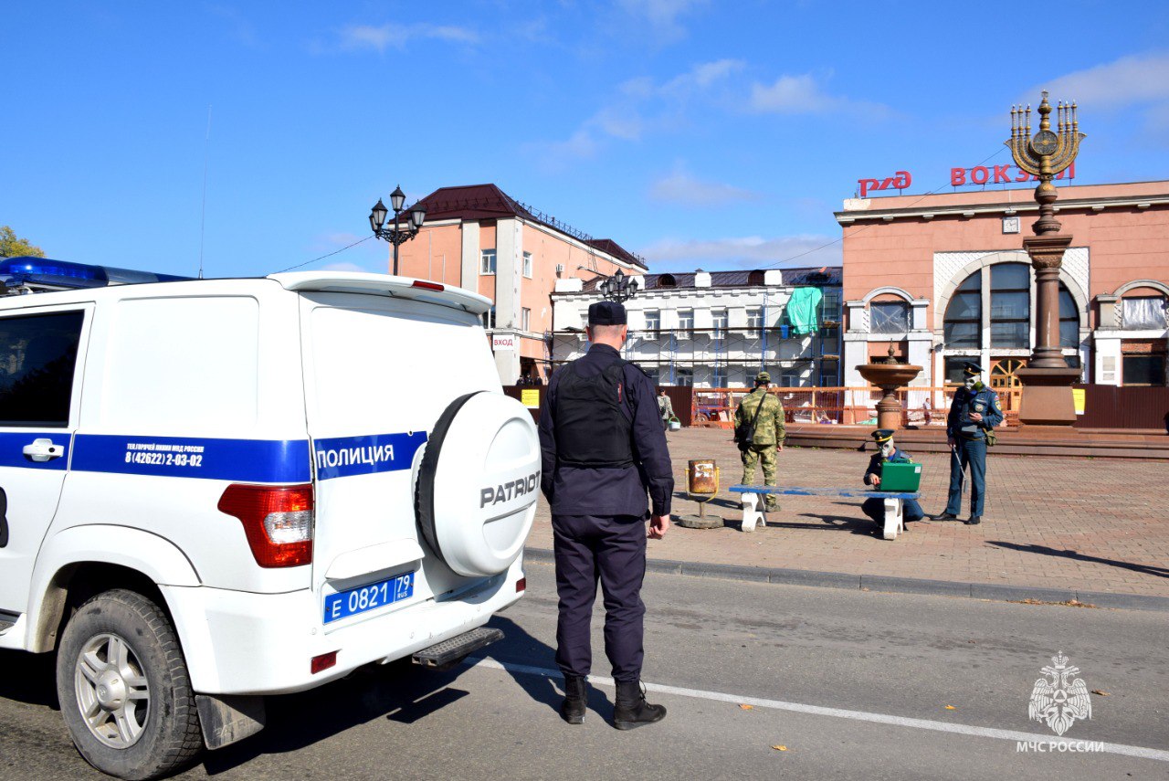 Силами Росгвардии и полиции был оцеплен участок привокзальной площади, который, по вводной, попал в зону чрезвычайной ситуации. Звенья радиационной, биологической и химической разведки Роспотребнадзора и МЧС России провели замеры проб воздуха, после чего продезинфицировали спецавтомобили и обмундирование.
