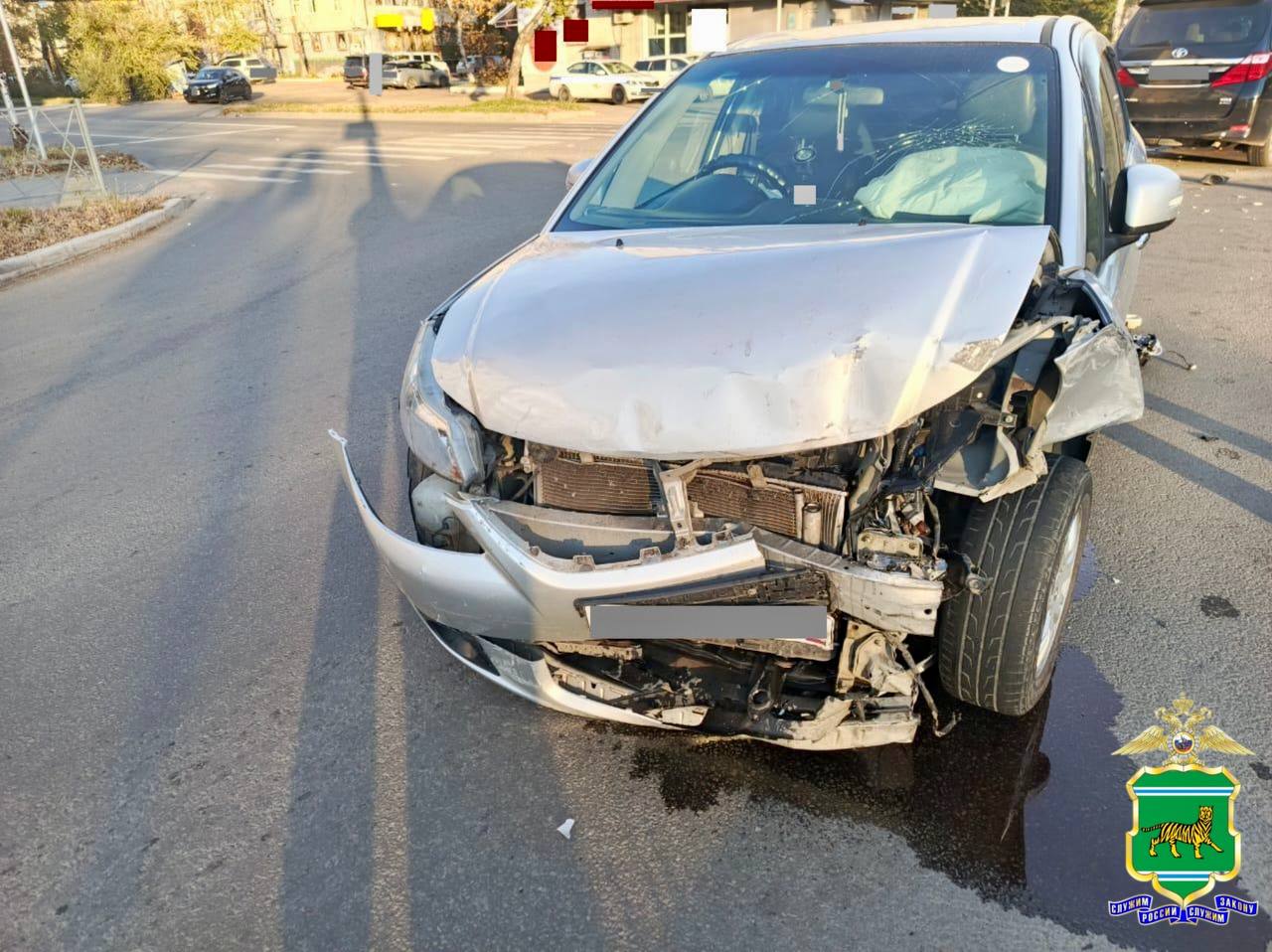 В Биробиджане водитель проехал на запрещающий сигнал светофора и стал виновником аварии