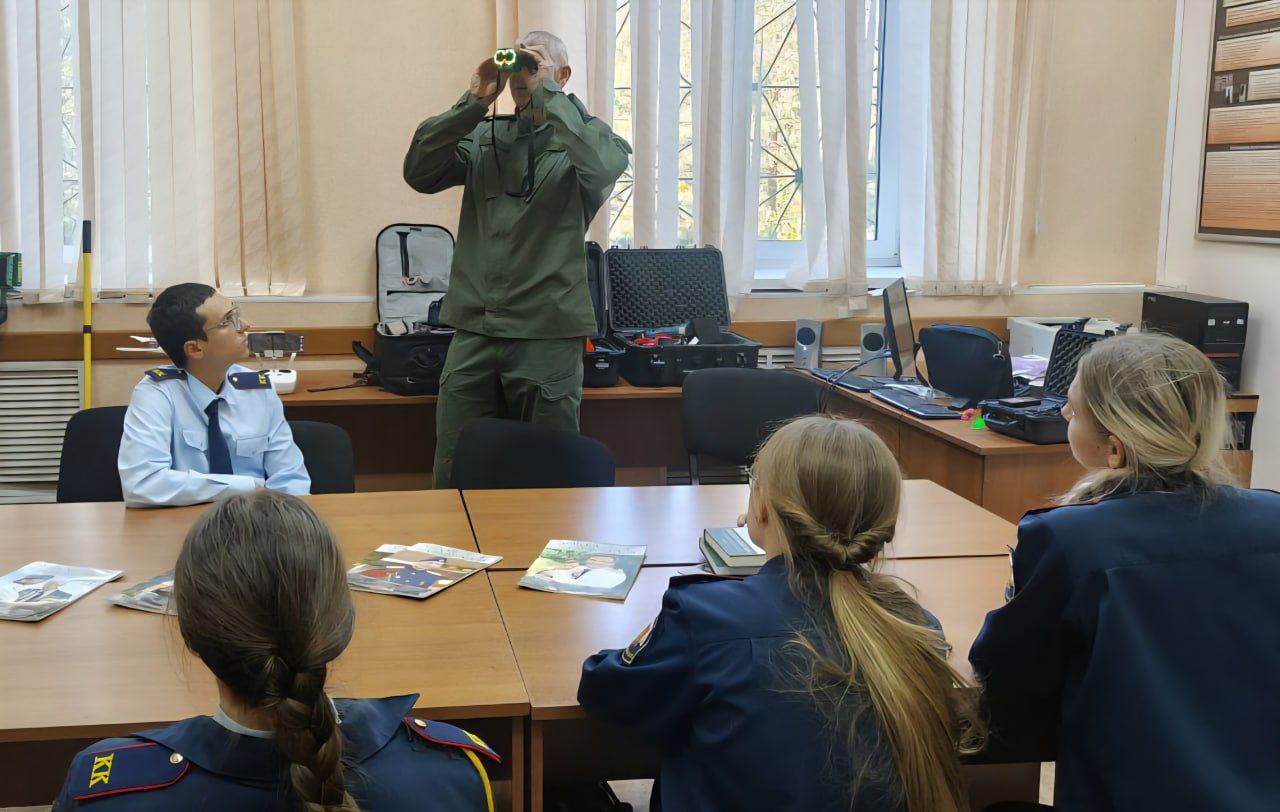 Следователи-криминалисты Федоренко Марина и Паранькин Константин познакомили школьников с методами фиксации следов преступления, а также с криминалистической техникой и особенностями ее применения в экстремальных условиях.