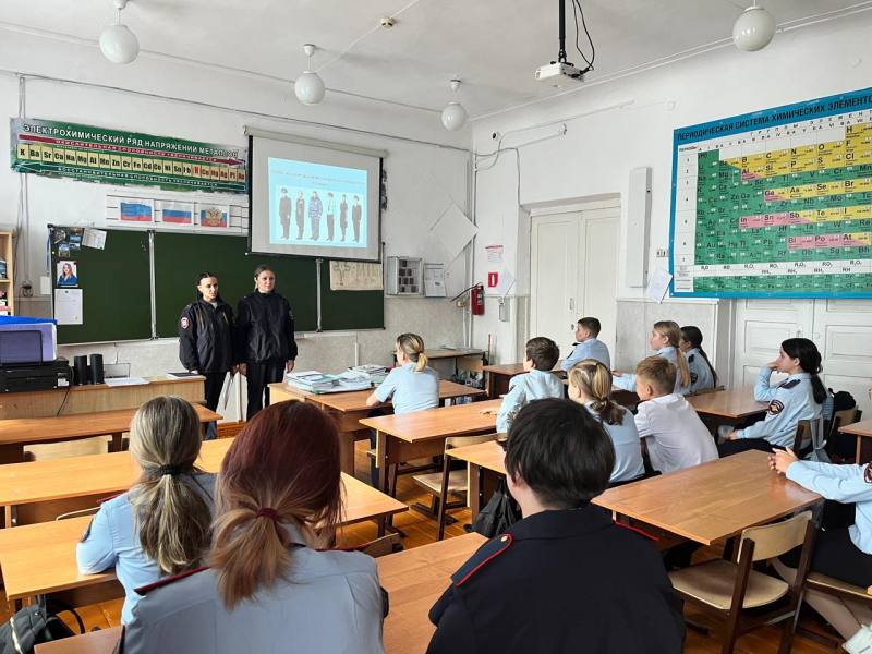 Профориентационный урок для учащихся провели майор полиции Ольга Беляева и старший лейтенант полиции Зинаида Амирова. Стражи порядка подробно рассказали школьникам о структуре МВД, разнообразии служб и подразделений, а также об их основных задачах и функциях.