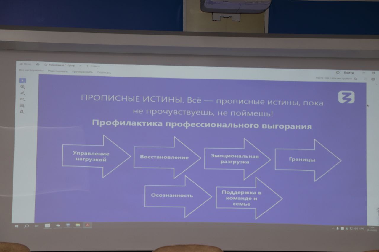 Лектором выступила ректор Института развития образования Еврейской автономной области Наталья Кузьмина. Она рассказала работникам органов прокуратуры региона о профилактике профессионального выгорания, о семейных ценностях и о том, что стоит за этими понятиями. Озвучены основные аспекты деятельности руководителя и принципы его работы.