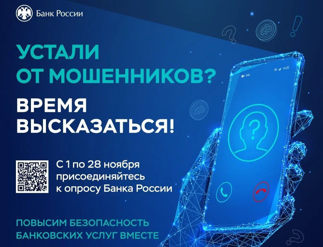 Для повышения защищенности финансовых операций Банк России в период с 1 по 28 ноября 2025 года проводит анонимный опрос среди населения о степени удовлетворенности уровнем безопасности финансовых услуг.