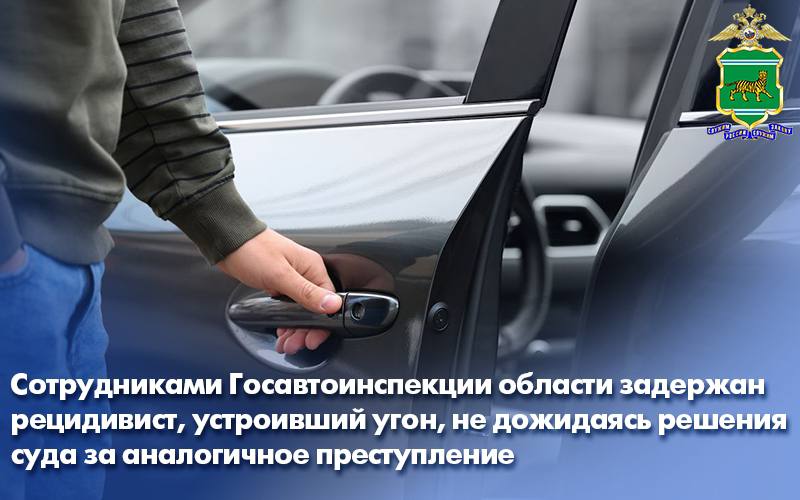 Сотрудниками Госавтоинспекции области задержан рецидивист, устроивший угон, не дожидаясь решения суда за аналогичное преступление