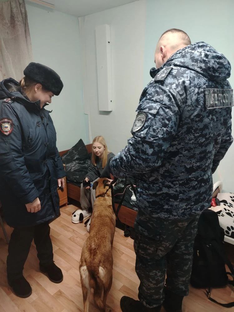 В Облучье сотрудники подразделения по делам несовершеннолетних ОМВД России по Облученскому району совместно с коллегами из кинологической службы провели вечерний рейд в Техническом колледже