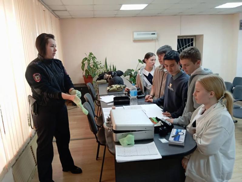 Эксперт-криминалист наглядно продемонстрировал, как проводится осмотр места происшествия, и объяснил важность правильного обнаружения, изъятия и фиксации вещественных доказательств.
