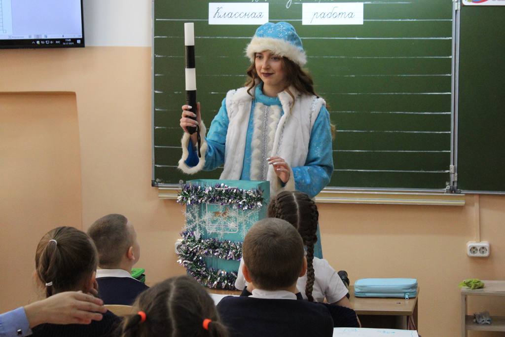 Ребята очень ждали встречи с главным волшебником – Дедом Морозом. Всем дружным классом они позвали новогоднего персонажа, который с мешком подарков пришел к школьникам.