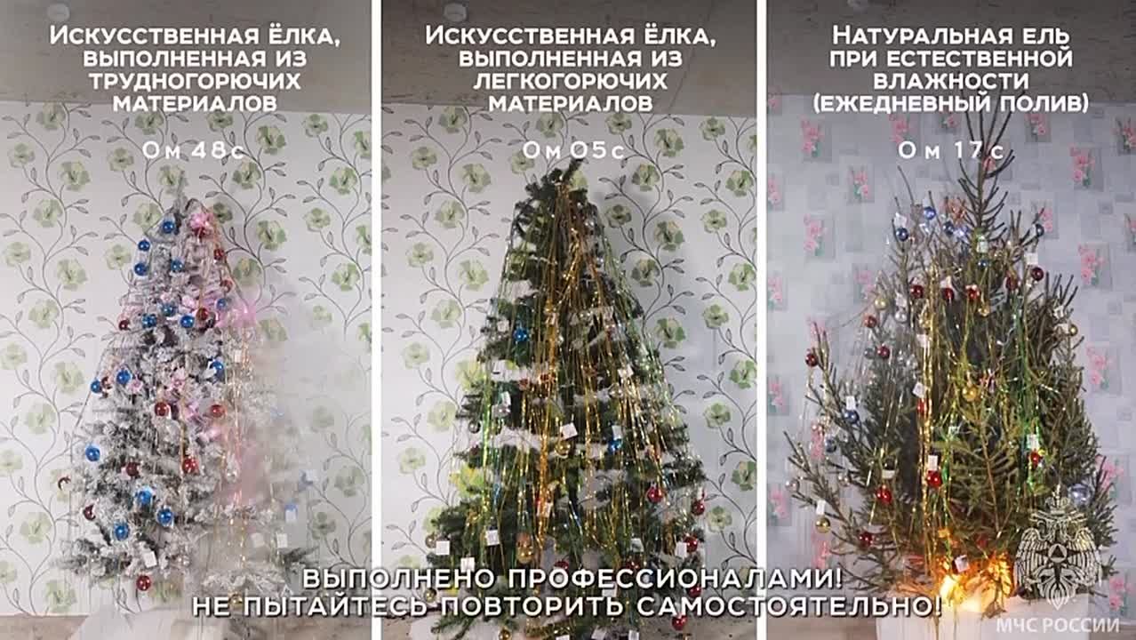 Какая быстрее сгорит – живая, искусственная или елка из трудногорючих материалов?