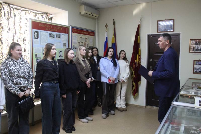 Председатель ветеранской организации Управления МВД России по ЕАО Павел Малышев подробно рассказал молодым людям о традициях ведомства, значимости исторической памяти и подчеркнул важность преемственности поколений в сохранении ценностей героизма и служения обществу.