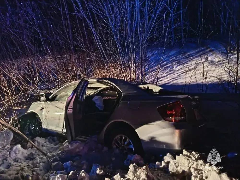ДТП недалеко от Биробиджана случилось сегодня в 05:15. Спасатели МЧС России Михаил Королев, Максим Гольцов и Алексей Качурин деблокировали пострадавшую 1989 года рождения, оказали ей первую помощь и передали медикам