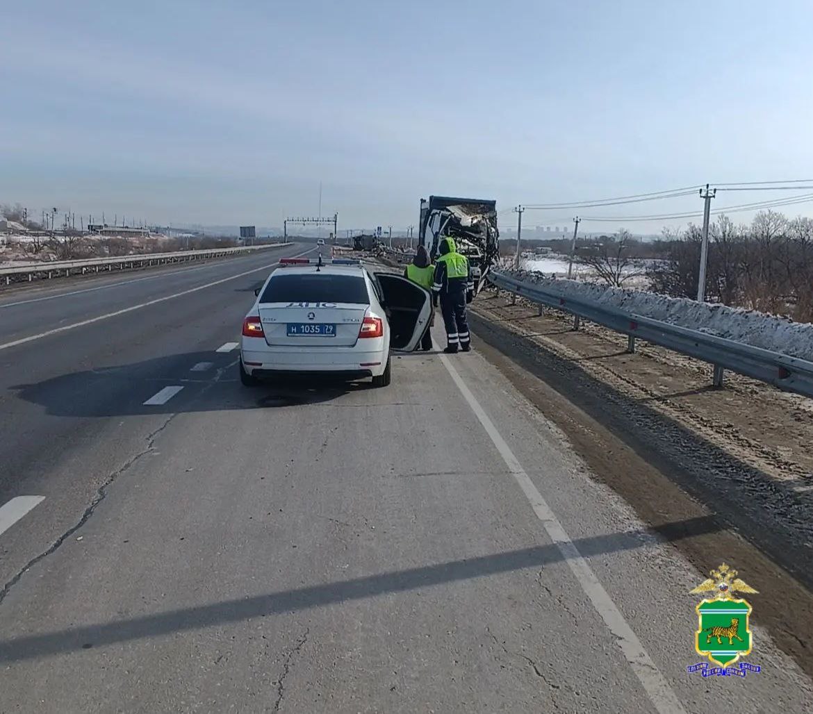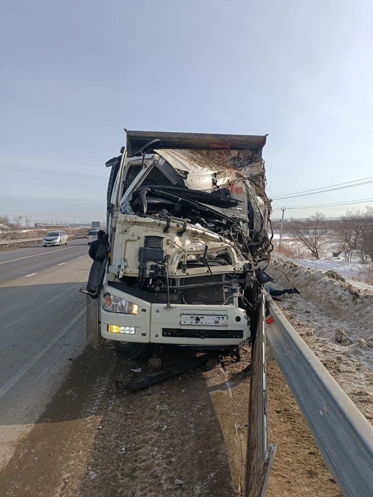 В результате ДТП водитель «самосвала» от полученных травм скончался на месте. Водитель автомобиля «Isuzu» с места происшествия доставлен в медицинское учреждение г. Хабаровска.