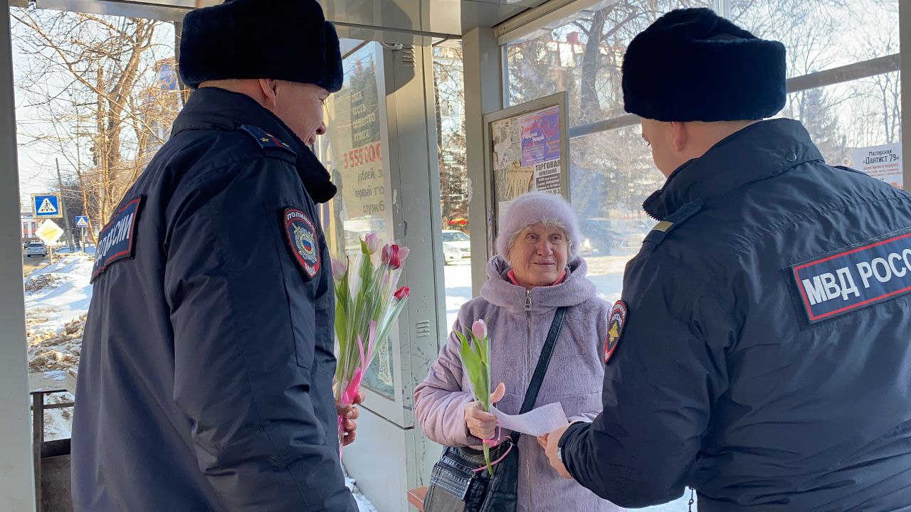 Сотрудники патрульнопостовой службы Биробиджана тепло поздравили женщин с 8 Марта