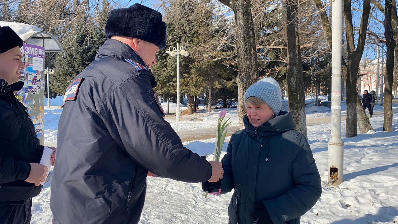 Вместе с тюльпанами полицейские вручали тематические открытки, содержащие полезные советы по защите от действий мошенников. Таким образом, кроме приятных эмоций, женщины получили ценные рекомендации по личной безопасности.