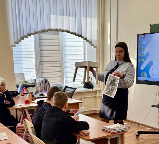 Увлекательный урок провела Екатерина Гайдаева, начальник группы дознания отделения полиции МО МВД России «Ленинский».