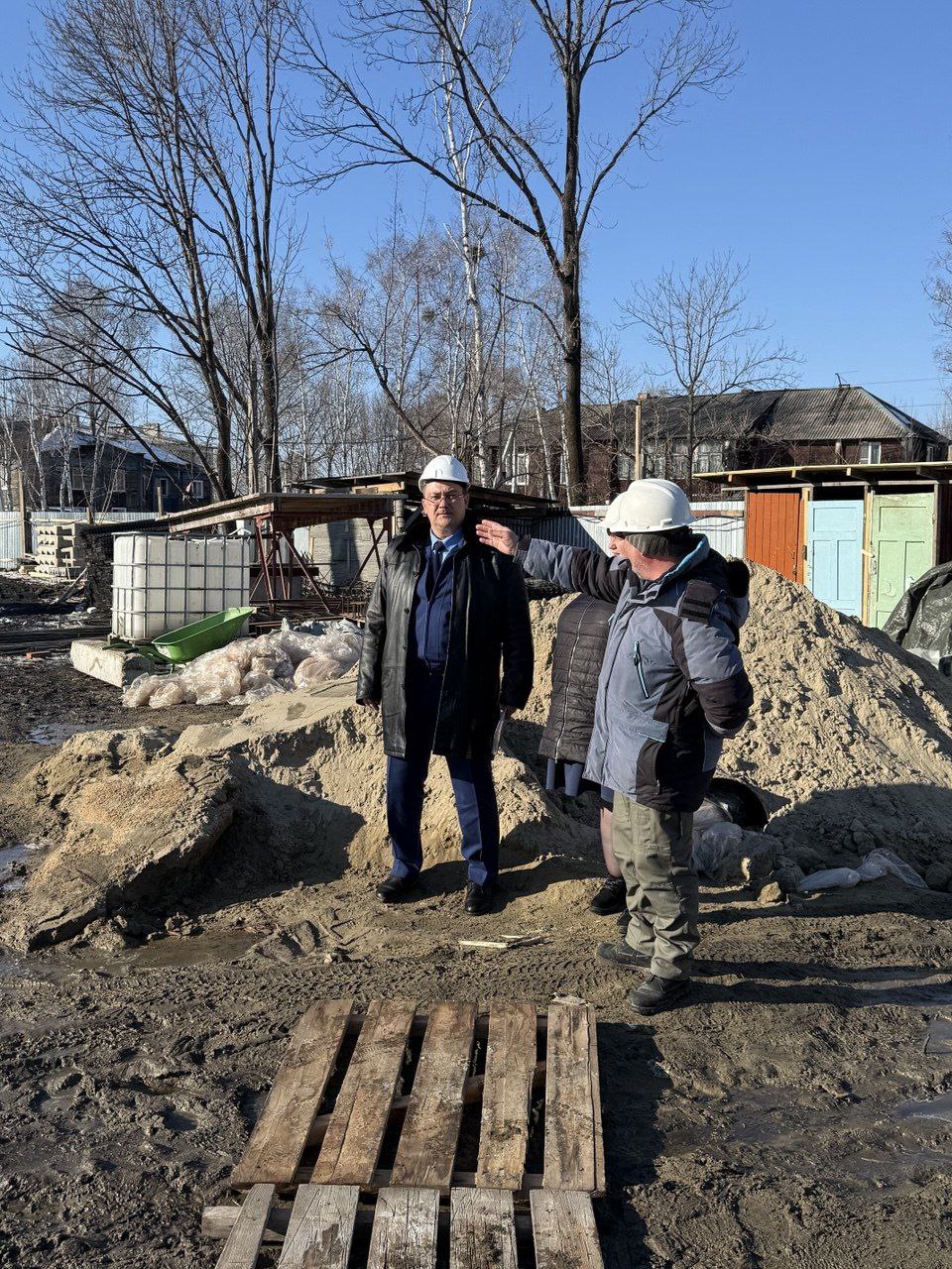 В рамках выезда в с. Волочаевка-2 установлено, что строительство 45-квартирного дома проводится застройщиком в соответствии с графиком – осуществляется поэтапное возведение фундамента и другие работы.