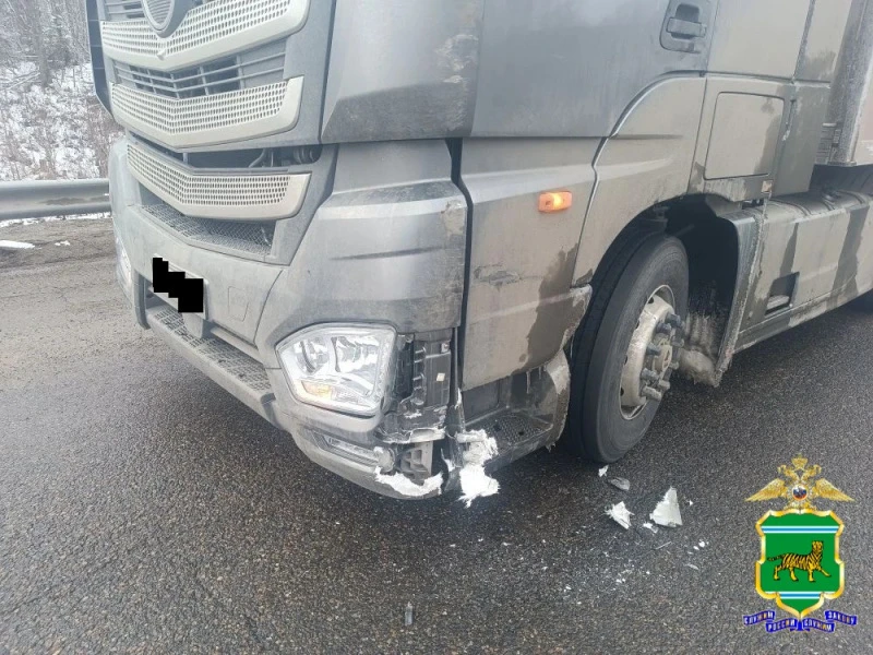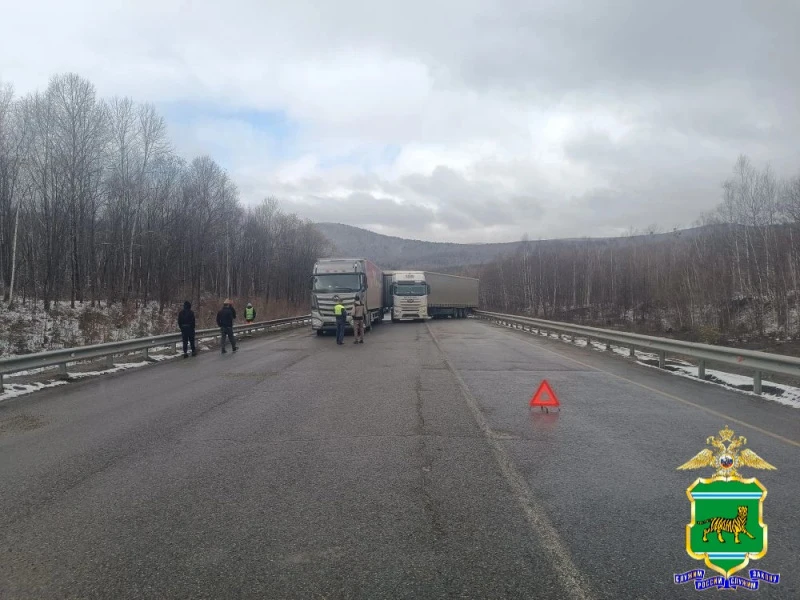 По предварительным данным, 23.04.2026 в 05 часов 30 минут в районе 1778 км 500 м ФАД «Чита-Хабаровск», Облученский район, водитель автомобиля «ФАВ» с полуприцепом не учел состояние дорожного покрытия, не справился с рулевым управлением и совершил наезд на стоящий автомобиль в попутном направлении автомобиль «Валдай» с полуприцепом. В результате ДТП автомобили получили механические повреждения.