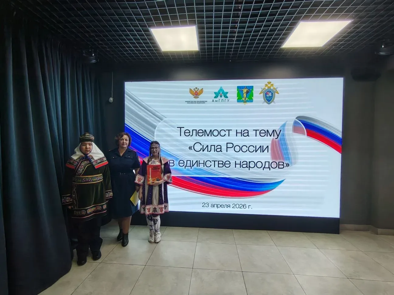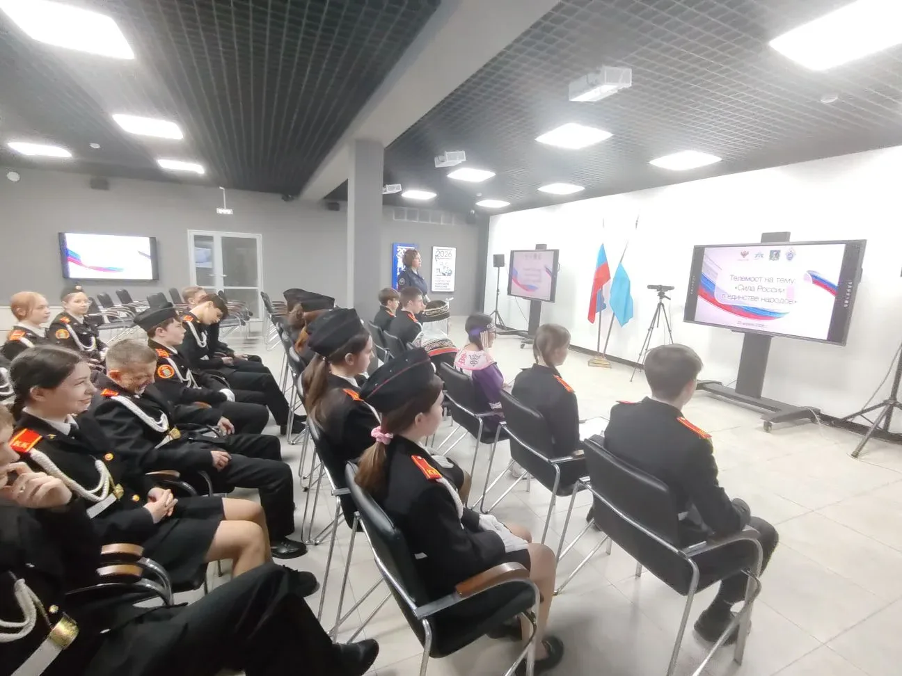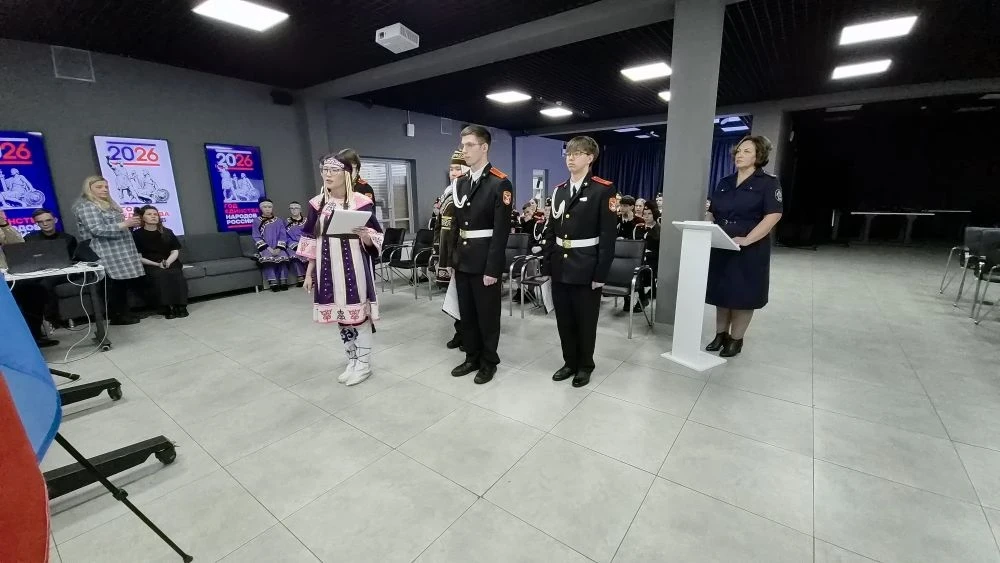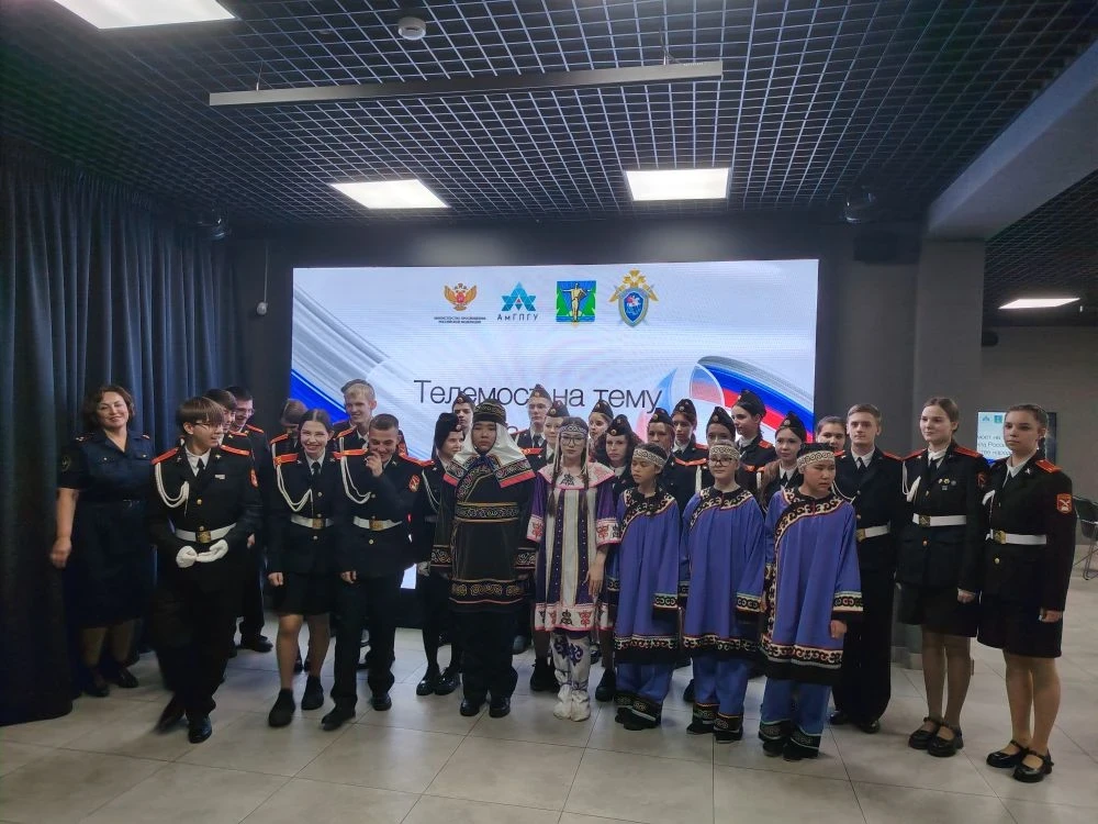 В рамках телемоста кадеты из Комсомольска-на-Амуре, Мурманска, Кургана, Читы, Кемерово встретились, чтобы поделиться друг с другом результатами своей исследовательской и творческой деятельности, посвященной народам, живущим на их малой родине.