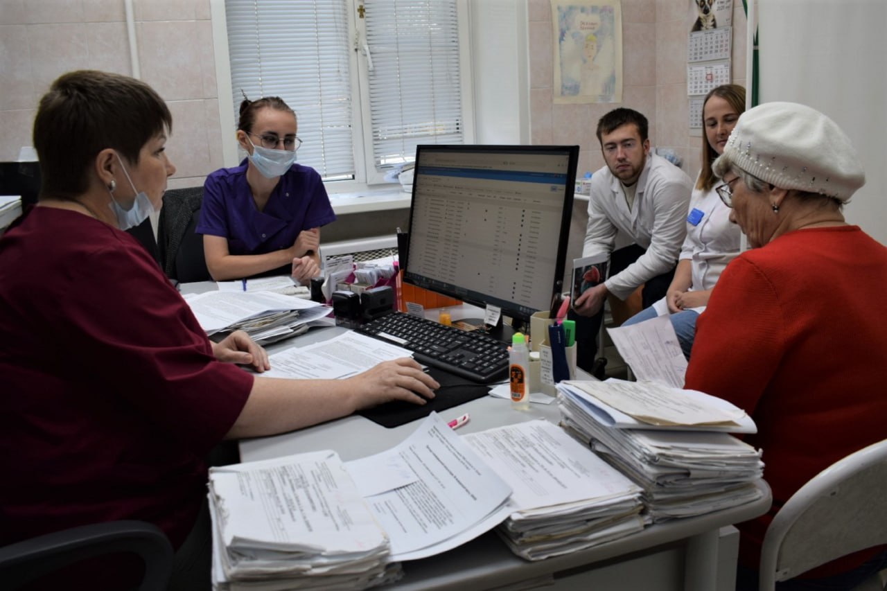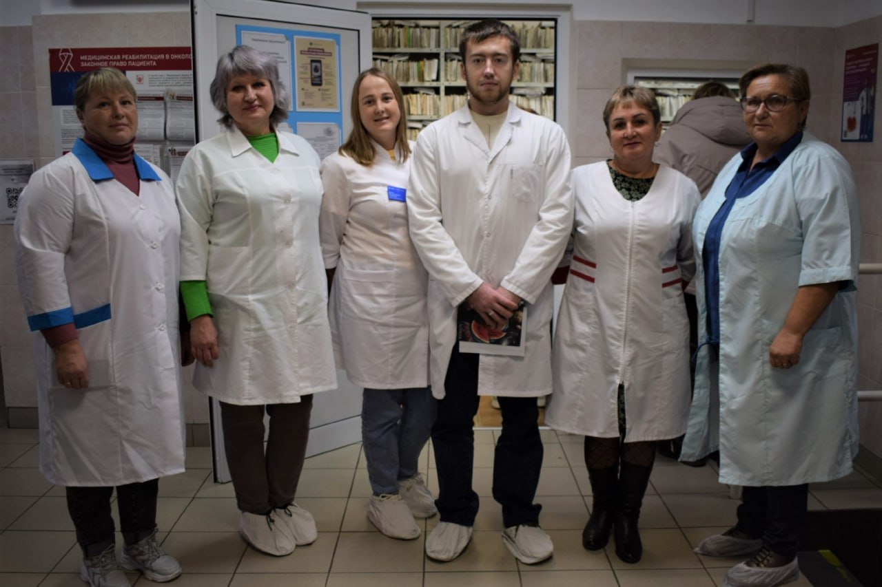 Шесть фельдшеров весь рабочий день провели в кабинетах с онкологами, участвовали в осмотре пациентов и учились первичному приёму для выявления злокачественных опухолей.