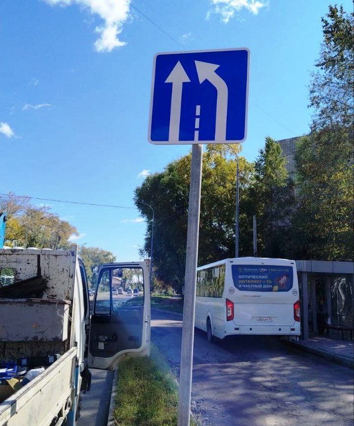 В Биробиджане началось обновление системы дорожных знаков. Подрядчик занимается установкой новых табличек на место устаревших.