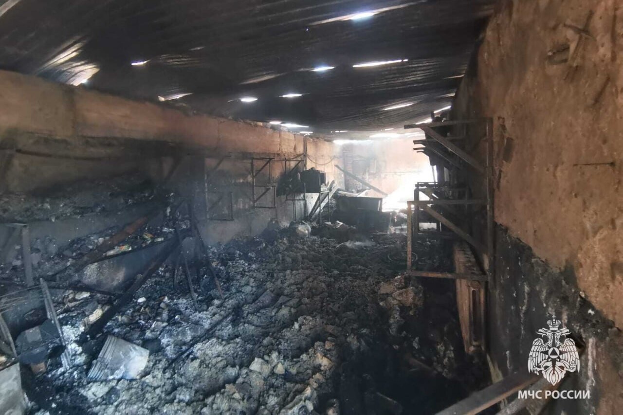 Силами шести человек и двух единиц техники на полную ликвидацию горения потребовалось более 14 часов. В результате пожара строение площадью 200 кв. метров выгорело полностью.