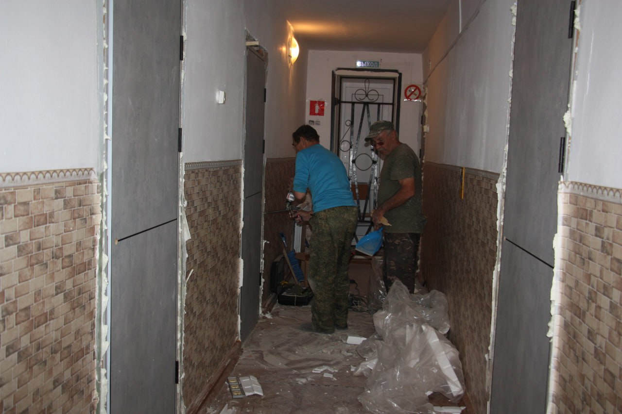 Специалисты уже выполнили демонтажные и облицовочные работы. В ближайшее время будет проведена покраска зала, а также покраска лестничного марша. Кроме того, во всех помещениях школы проведут замену светильников.