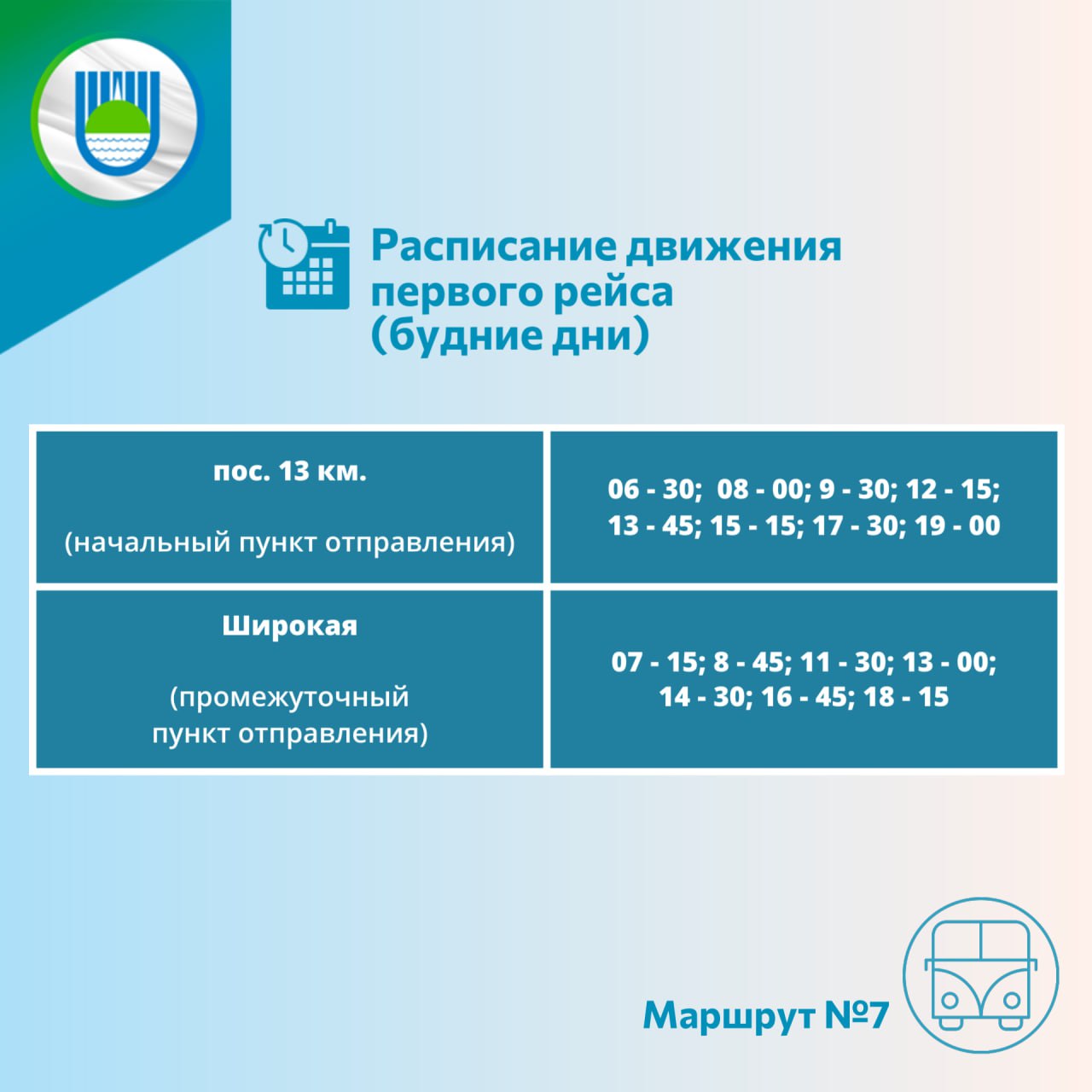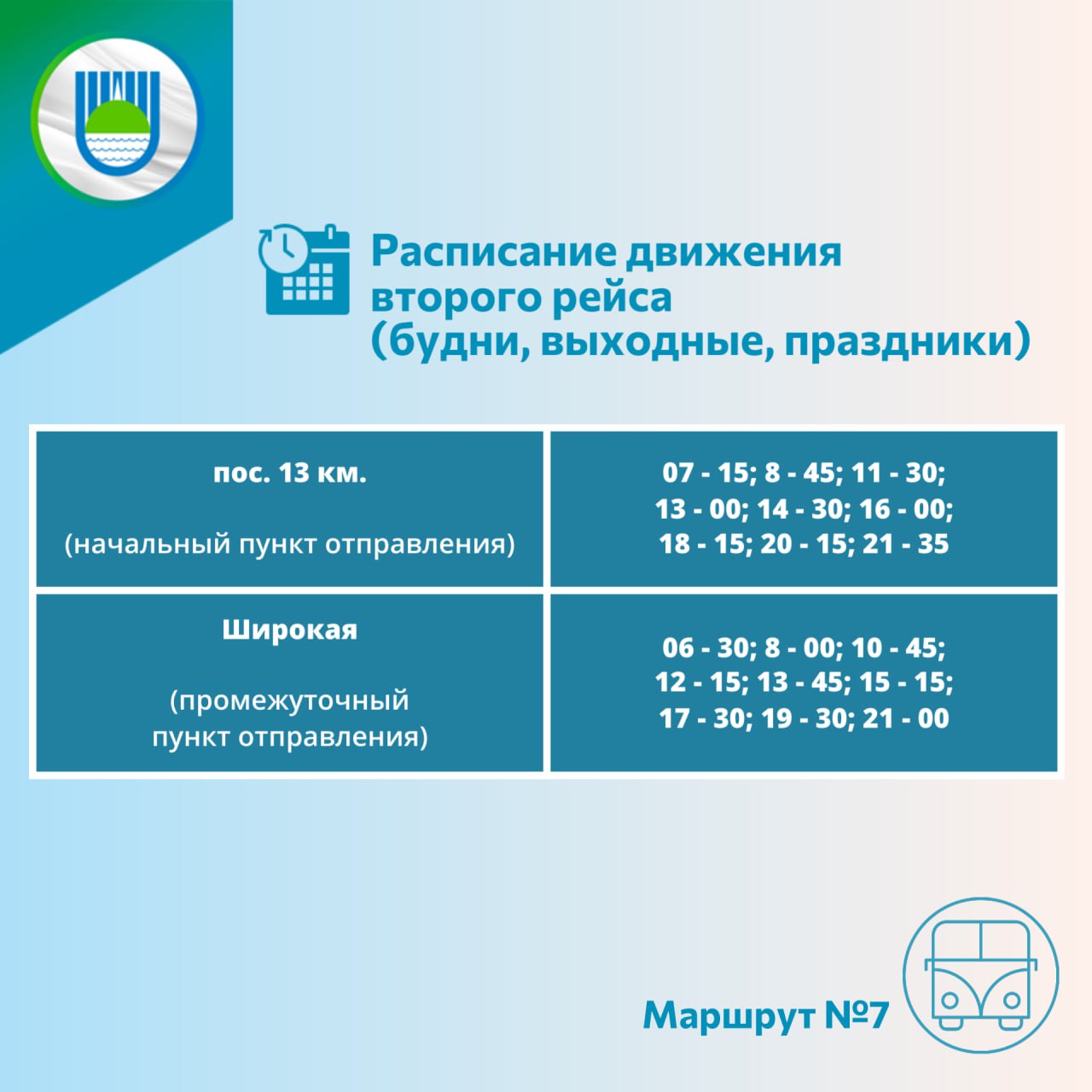 Публикуем утвержденное расписание маршрута №7