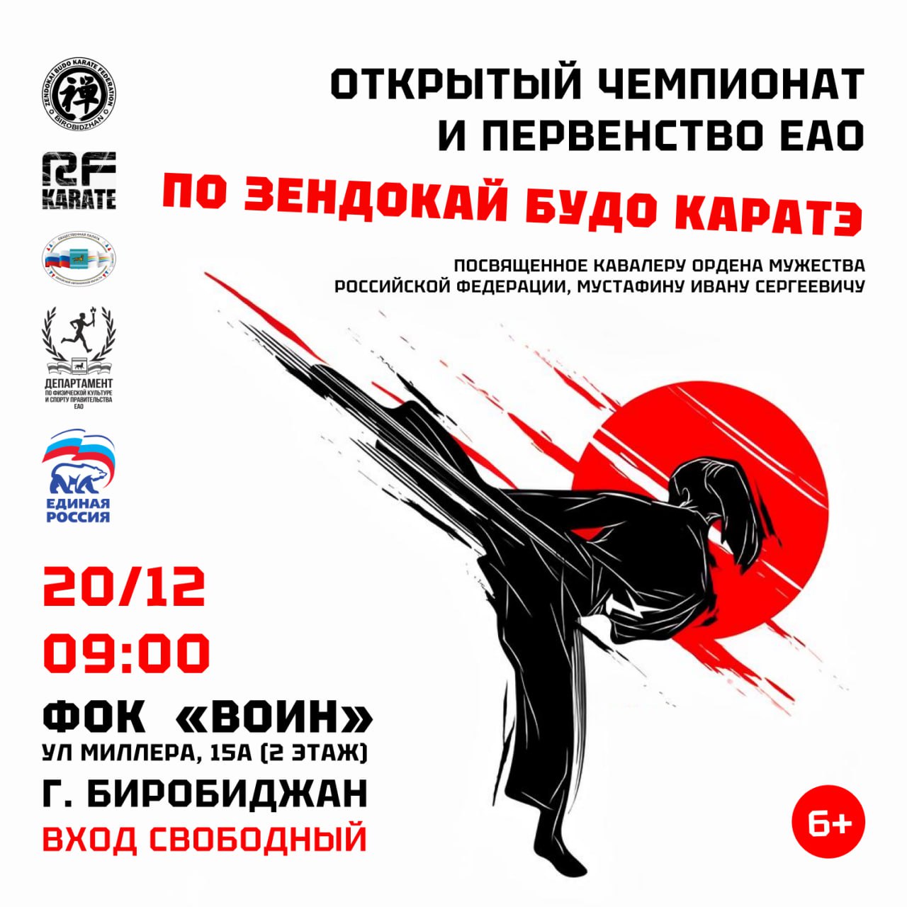 20 декабря в ФОК «Воин» пройдет открытый чемпионат и первенство ЕАО по зендокай будо карате, посвященные кавалеру ордена Мужества Российской Федерации Ивану Мустафину. Начало соревнований – в 09:00.