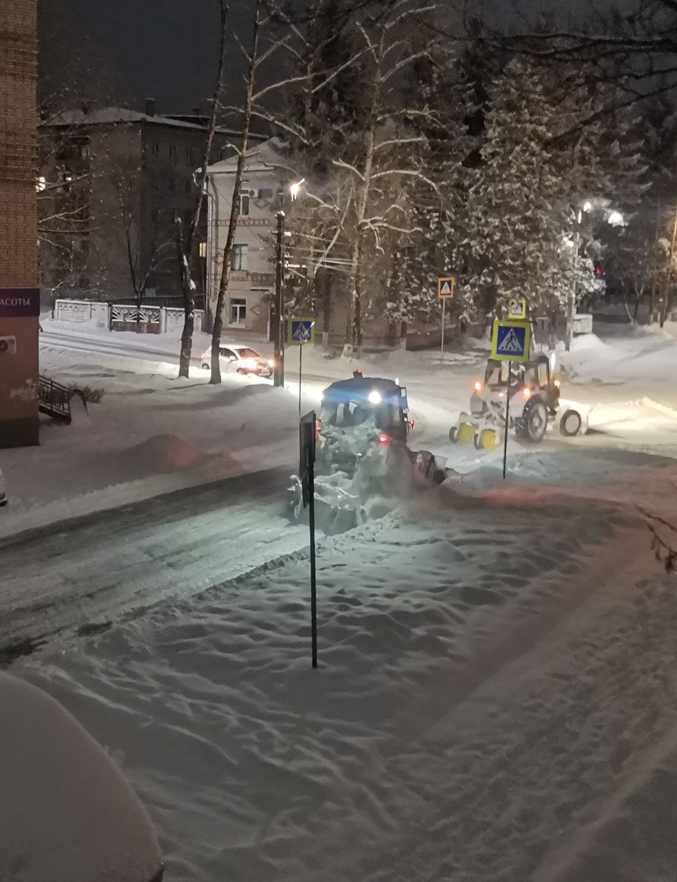Коммунальные службы расчищали от снега улицы, по которым ходят автобусные маршруты и проходит основной автомобильный трафик
