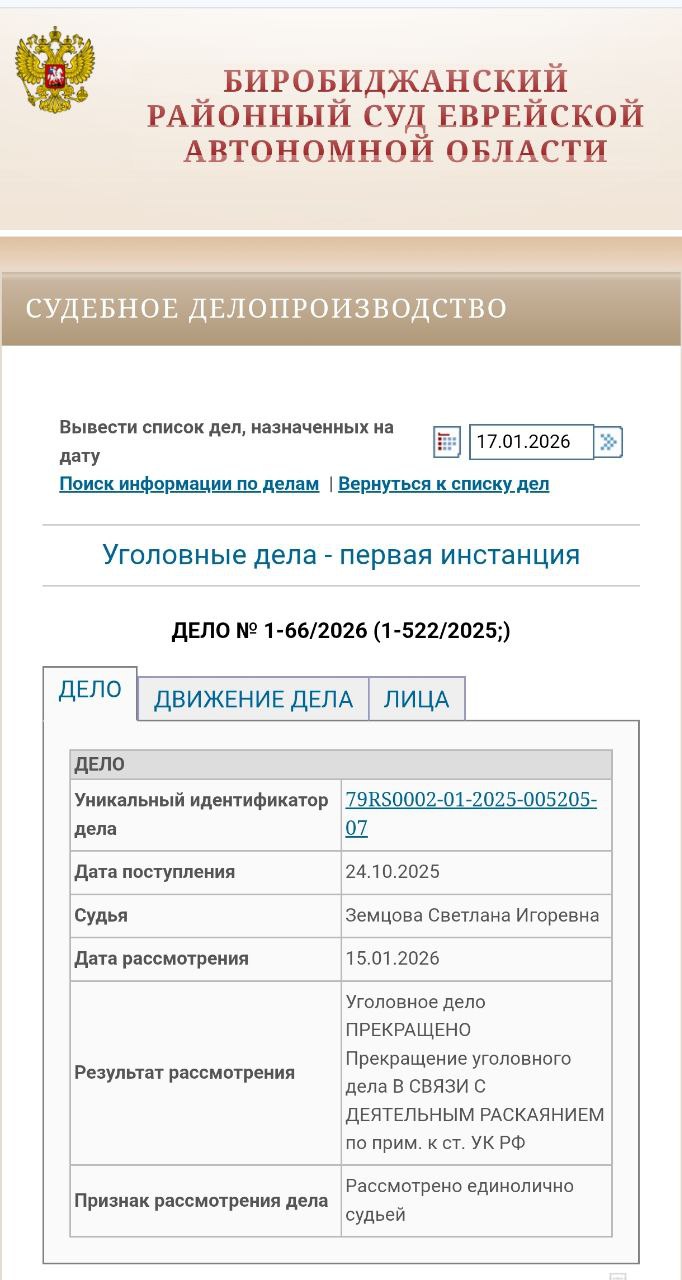 РАСКАЯЛСЯБиробиджанский районный суд 15 января прекратил уголовное дело в отношении директора госпредприятия ЕАО «Облэнергоремонт плюс» Андраника Авдаляна в связи с деятельным раскаянием. Информация об этом появилась на официальном сайте инстанции.