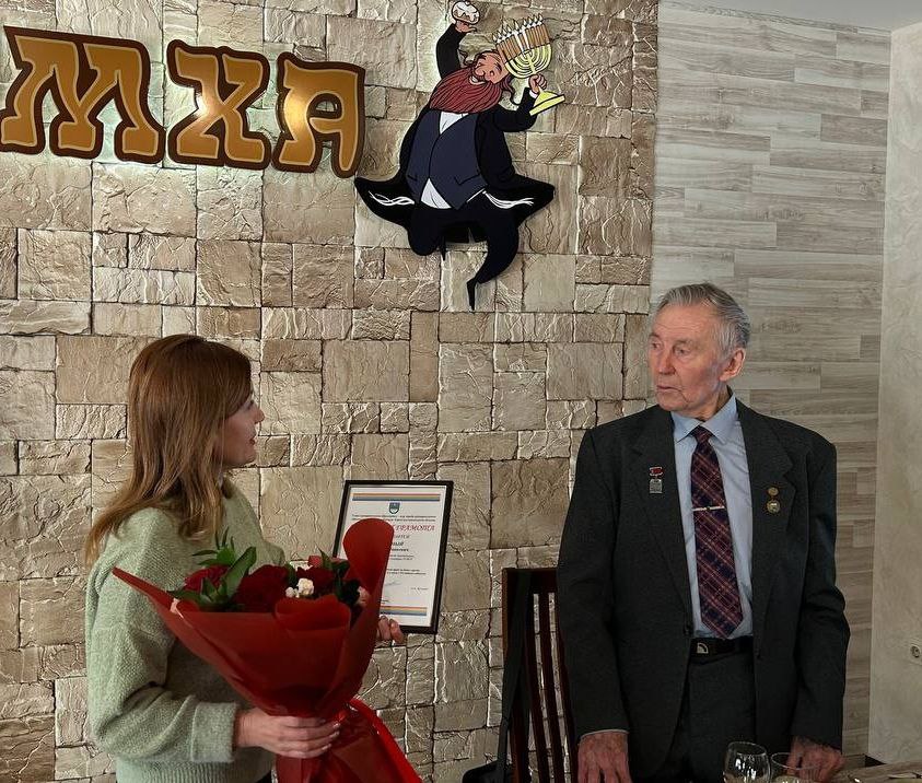 От имени мэра Биробиджана Алексея Кузьмина юбиляра поздравила заместитель главы мэрии по социальным вопросам, образованию и культуре Наталья Еременко: