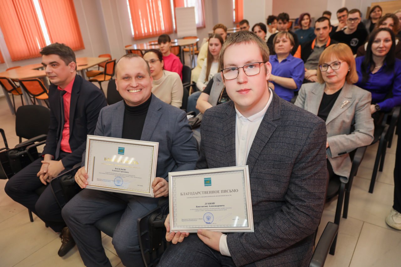 За высокие профессиональные достижения Андрей Голубь вручил Благодарность ЗС заведующему кафедрой технических дисциплин Алексею Васильеву и Благодарственное письмо – инженеру-исследователю молодежной научной лаборатории ледотехники Константину Духнову.