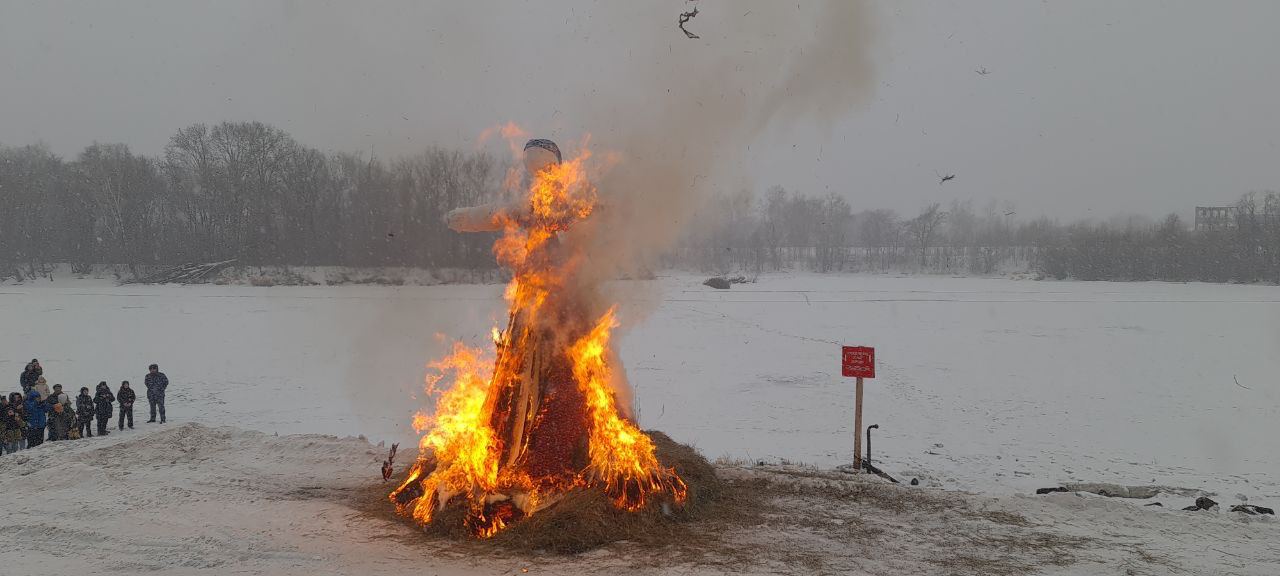 Ближе к завершению мероприятия — торжественное сжигание соломенного чучела Масленицы.