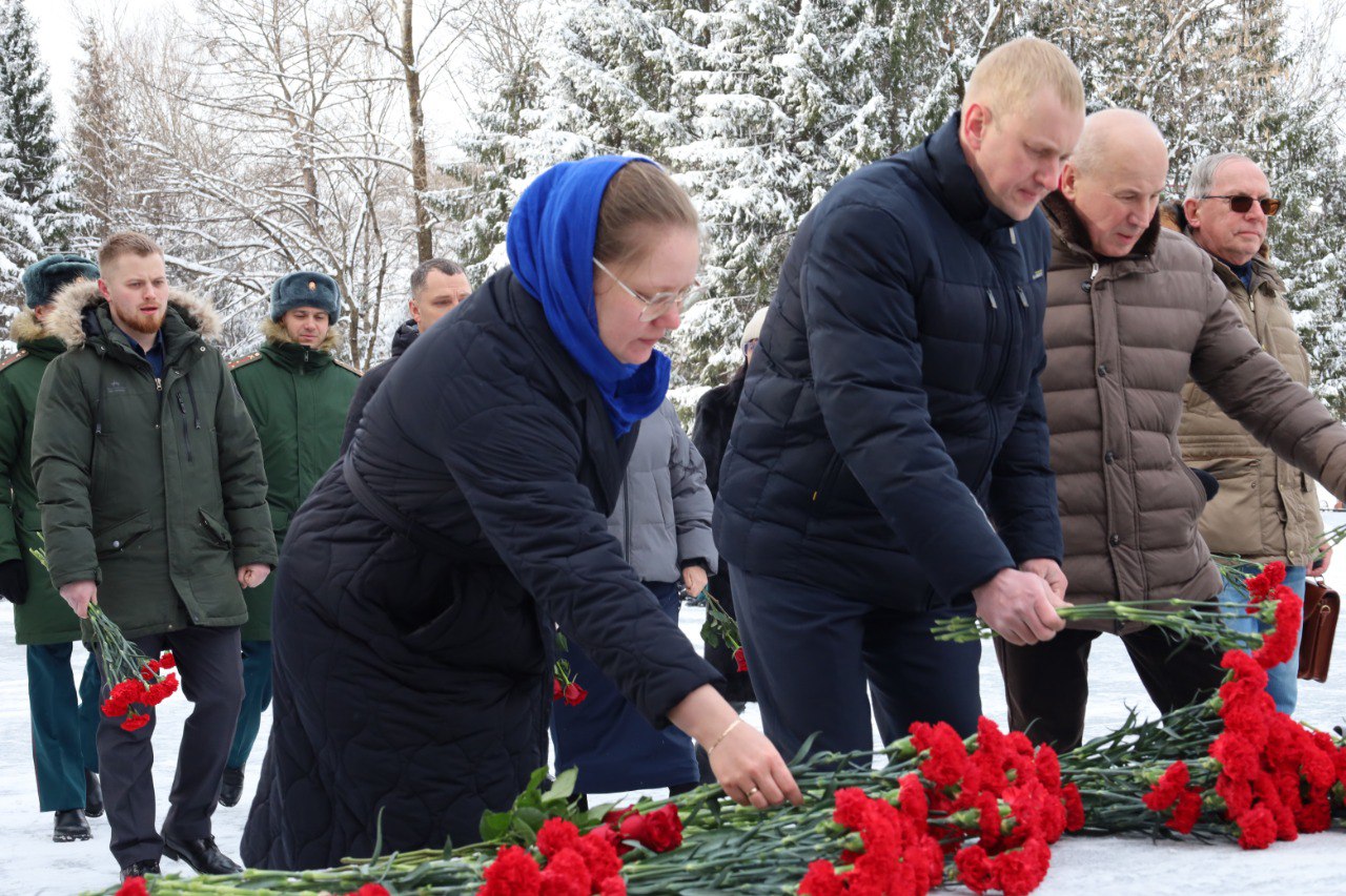 Участники церемонии почтили память погибших защитников Отечества минутой молчания и возложили цветы к мемориалу.