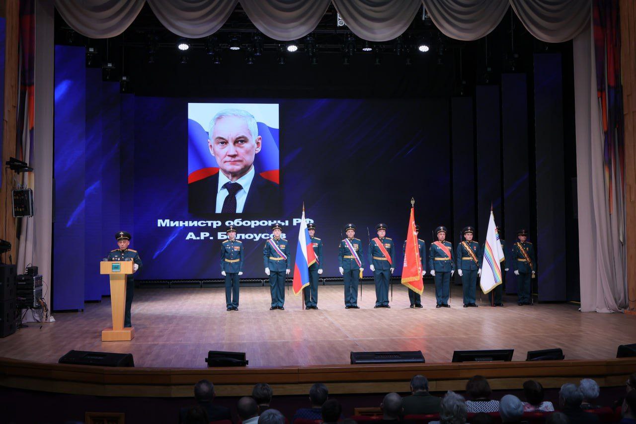 В областной филармонии для защитников прошло торжественное собрание. Государственный флаг Российской Федерации, копию Знамени Победы и флаг Еврейской автономной области на сцену внесли по команде начальника Биробиджанского гарнизона Еврейской автономной области, Гвардии подполковника Мирзабега Гасанова.