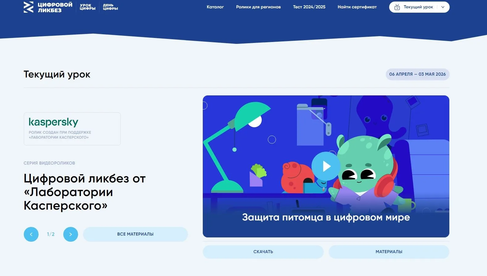 До 3 мая пройдет урок, посвященный двум важным темам. Оба материала подготовлены специалистами «Лаборатории Касперского» и доступны на платформе https://digital-likbez.datalesson.ru/