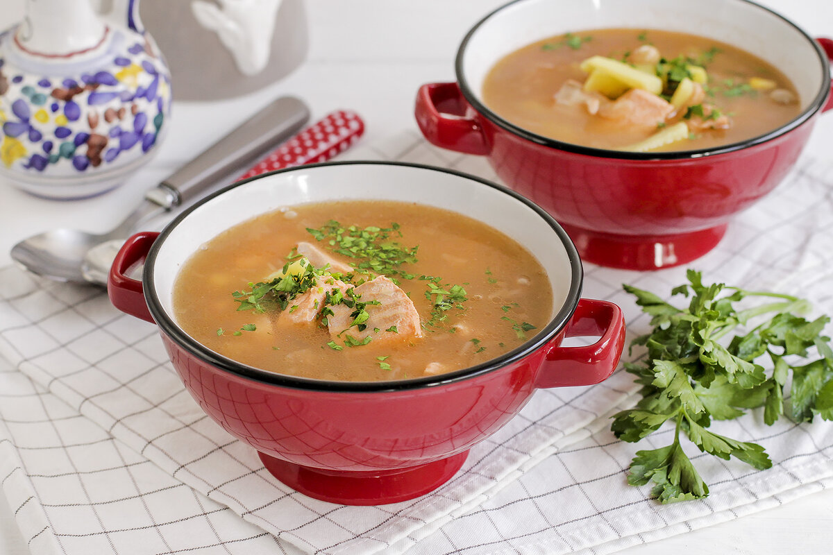 Выбор свежей форели — это ключевой момент для приготовления этого супа. Рыба должна иметь прозрачные глаза и блестящую, упругую кожу. При нажатии на её филе не должно оставаться вмятин, а саму рыбу желательно выбрать с минимальным рыбным запахом, что подтверждает её свежесть. Не переживайте о поисках качественной рыбы на рынке — всё необходимое можно найти в наборах с свежими ингридиентами.