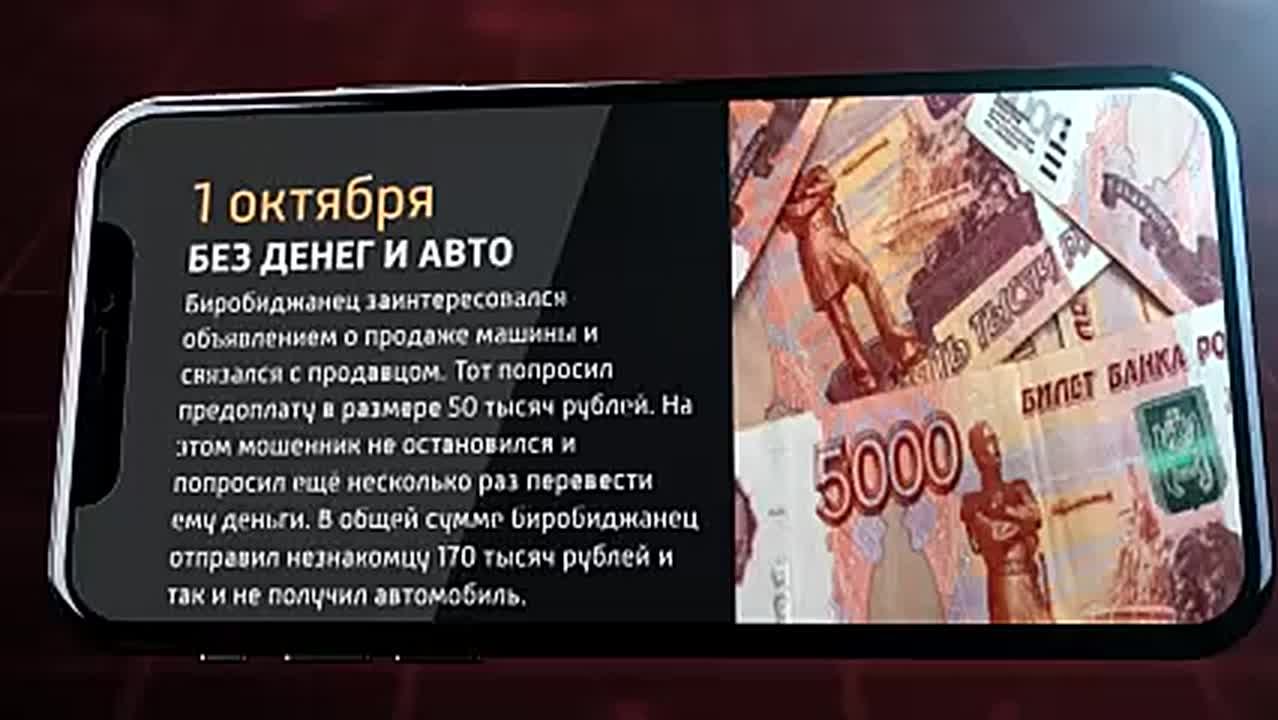 Биробиджанец заинтересовался объявлением о продаже машины и связался с продавцом. Тот попросил предоплату в размере 50 тысяч рублей. На этом мошенник не остановился и попросил ещё несколько раз перевести ему деньги. В общей сумме биробиджанец отправил незнакомцу 170 тысяч рублей и так и не получил автомобиль.