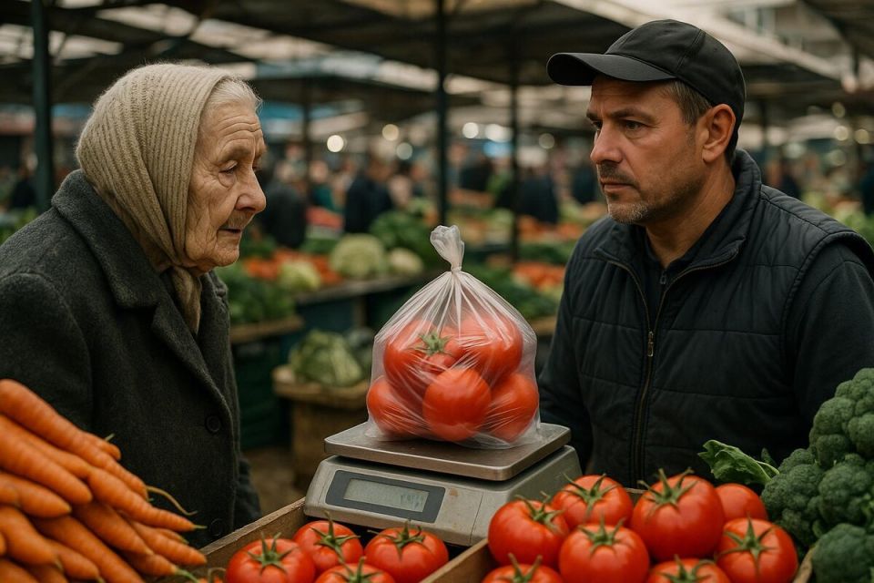 Ситуация на рынке в обычный четверг привлекла внимание многих. На одном из прилавков пожилая женщина попросила продавца дать ей полкило помидоров. Спокойная и сосредоточенная, она не догадывалась, что её могут обмануть.