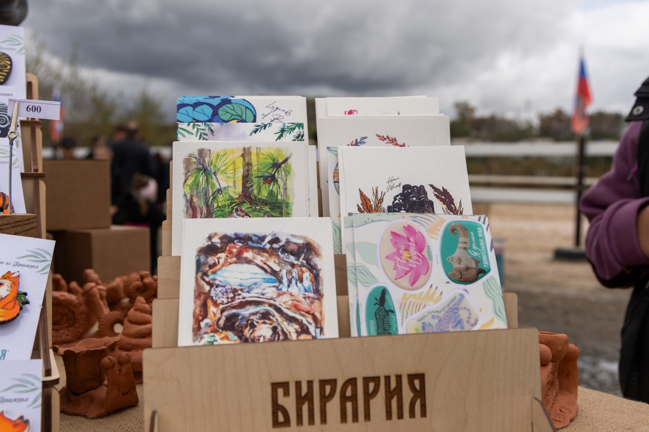 На открытках «Бирарии» изображены природные достопримечательности Приамурья, уникальные представители флоры и фауны. Специально для этнофеста была выпущена уникальная открытка с Долиной тигров, где художник запечатлел лошадиную семью из «Конного двора» на фоне сопок Малого Хингана и тигра, наблюдающего с вершины.