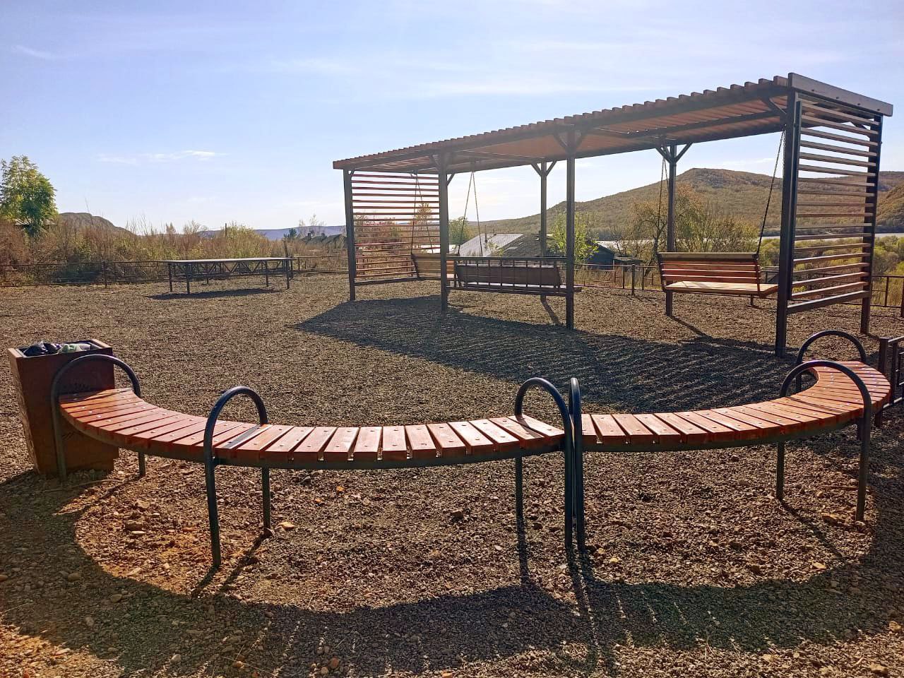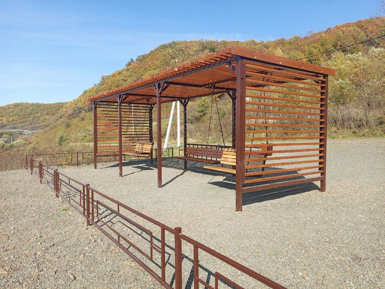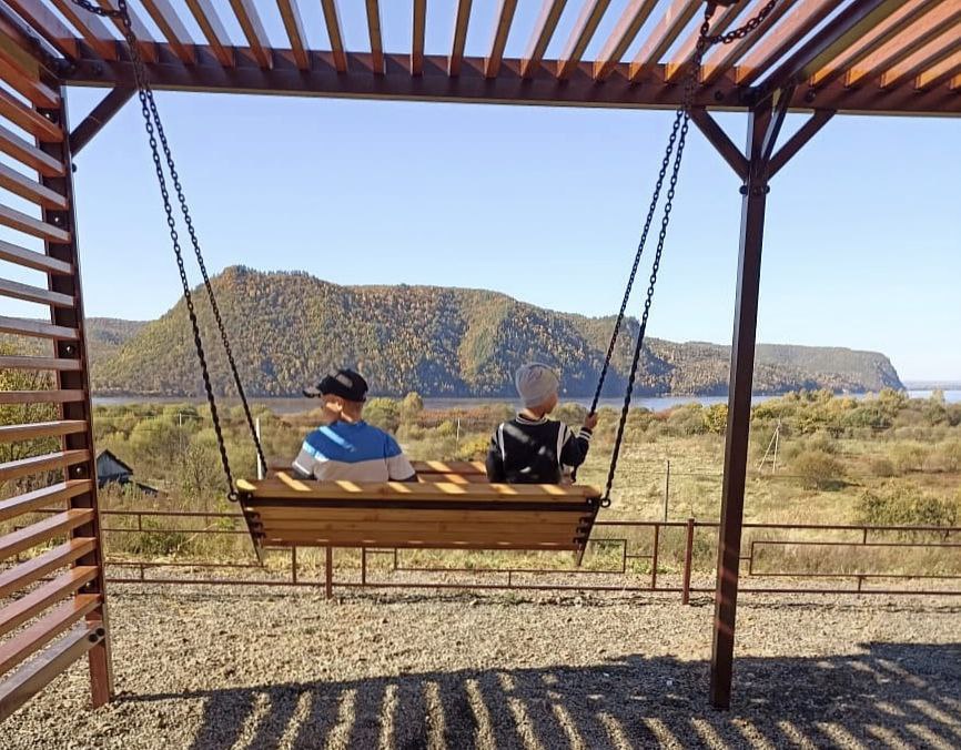 Уютная пергола с качелями, где можно покачаться, наслаждаясь панорамой реки;