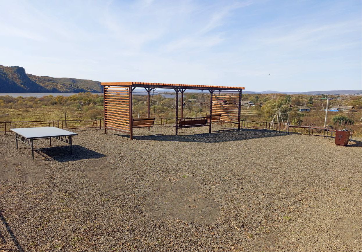 Преобразилась одна из самых живописных локаций в с. Радде. Теперь на Центральной улице есть комфортная смотровая площадка с видом на Амур.