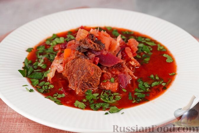 - Борщ с баклажанами и черносливом: необычная интерпретация классического борща, в которой добавлены копченые ребрышки и запеченная свекла. Баклажаны придают блюду изысканный вкус, а чернослив добавляет сладковатую нотку.