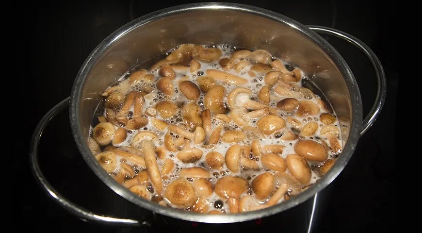 При варке опят стоит помнить о размере кастрюли, так как грибы занимают много места. Начать можно как с холодной, так и с кипящей воды, в зависимости от возраста грибов. Чтобы опята не потемнели, можно добавить немного лимонного сока в воду. После закипания важно снимать пену, а время варки варьируется в зависимости от дальнейшего использования: