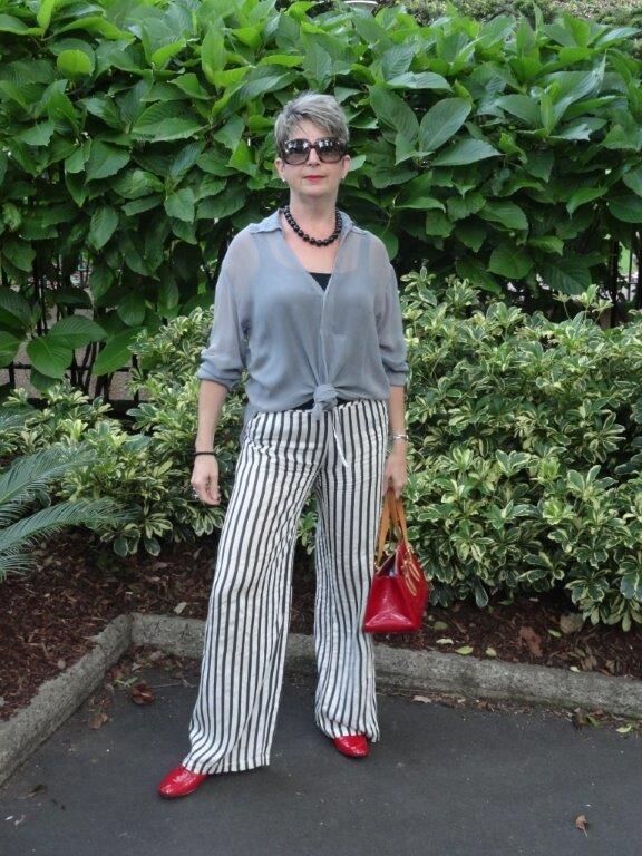 Подбирая брюки в полоску, важно учесть, что яркий низ требует грамотного подбора верхней части и аксессуаров. Неплохо подойдут: