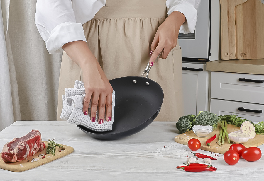 - Остужайте перед чисткой: Чтобы избежать деформации, дайте сковороде немного остыть после готовки. Чистка горячей сковороды может серьезно испортить покрытие.