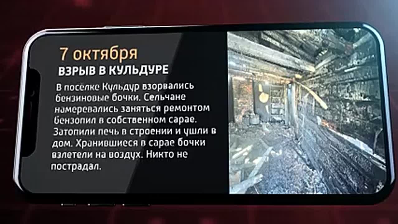 В посёлке Кульдур взорвались бензиновые бочки. Сельчане намеревались заняться ремонтом бензопил в собственном сарае. Затопили печь в строении и ушли в дом. Хранившиеся в сарае бочки взлетели на воздух. Никто не пострадал.