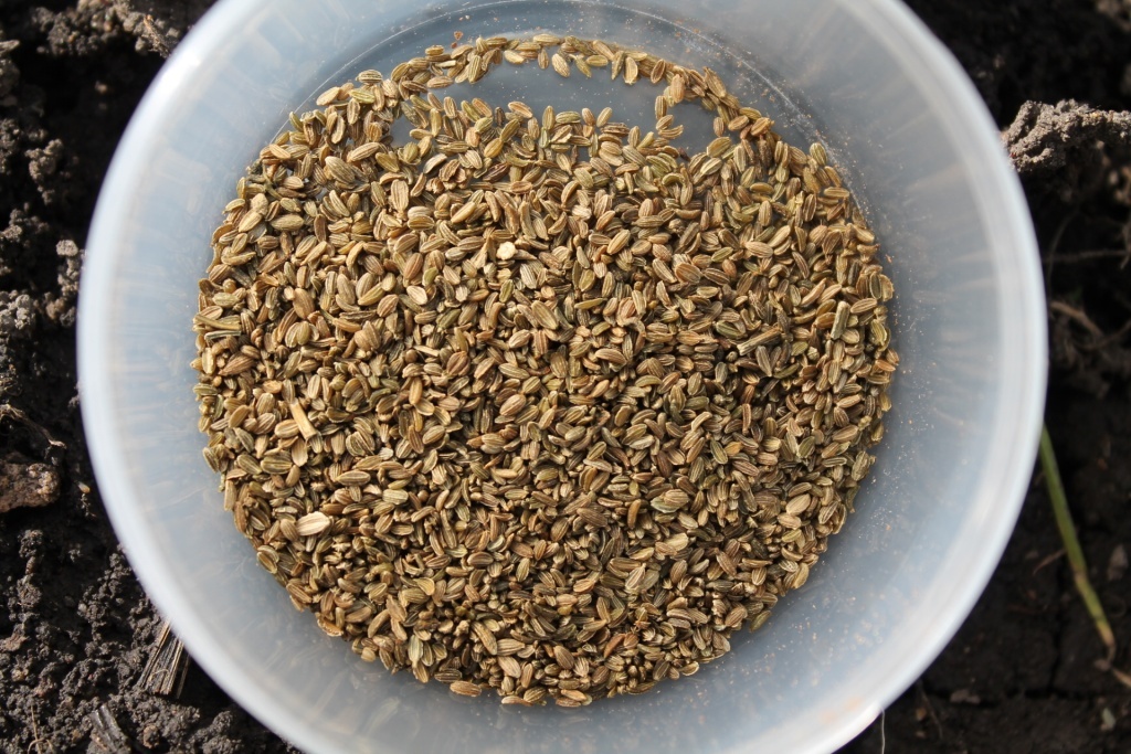 Созревание семян происходит в конце лета или ранней осенью. Чтобы семена не разлетелись, их можно укрыть марлей. Сбор семян производят в сухую погоду, срезая зонтики вместе с частью цветоноса. Помещение для сушки должно быть теплым и сухим. После сушки семена очищают от растительных остатков.