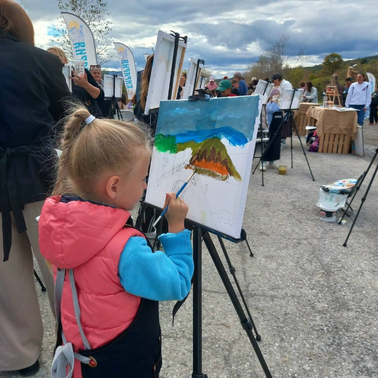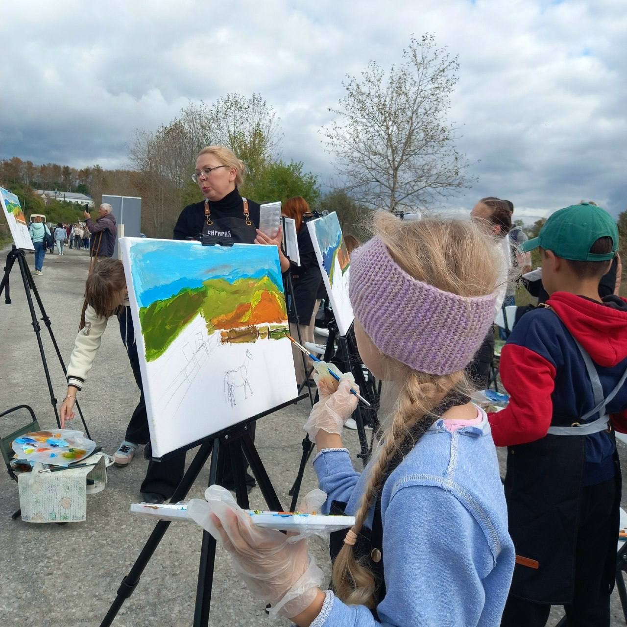 Пленэр объединил участников от 5 до 55 лет. Многие взрослые впервые работали акрилом, восторгаясь возможностью создать и забрать свою картину. Площадка привлекала зрителей. Дети с восторгом рисовали на холстах профессиональными материалами, искренне радуясь атмосфере праздника.