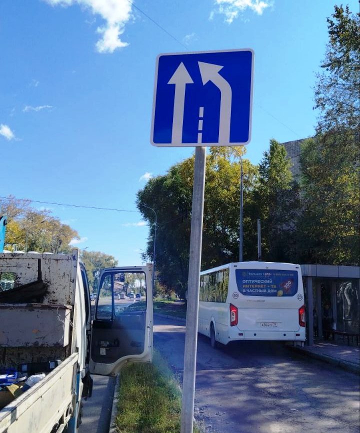 В областном центре начали обновлять систему дорожных знаков. Подрядчик устанавливает новые таблички взамен устаревших.