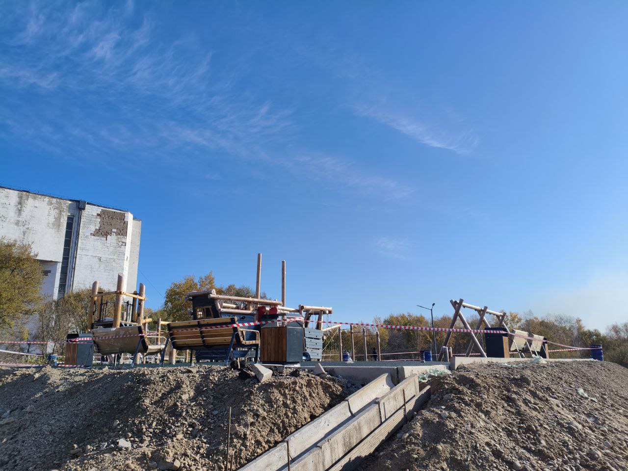 В Биробиджане продолжаются работы по комплексному благоустройству набережной реки Бира. На территории скейт-парка завершены демонтажные работы и укладка нового асфальтового покрытия. Параллельно с этим изготавливаются специализированные элементы, которые здесь будут установлены.